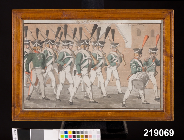 И давай не будем придираться к мелочам - типа количество галунов или пуговиц. Здесь солдаты специально не позировали, чтобы художник рассмотрел все мелочи и старательно выписал, как на парадном портрете. Как увидел силуэт - так и изобразил в общих чертах. Думаешь, он считал, сколько там этих галунов на рукаве?