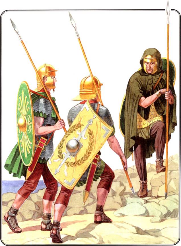 З.Ы. Возвращаясь к баранам. Начинали мв\ы с того, что я утверждал, что раз в тексте написано "испанцы", то это никоим образом не говорит о том ,что речь идёт о цетрататх, даже, если указано, что они похожи по вооружению (и тактике) на римскую лёгкую пехоту. Вот такой вот пехотинец, как на реконструкции Коннолли: